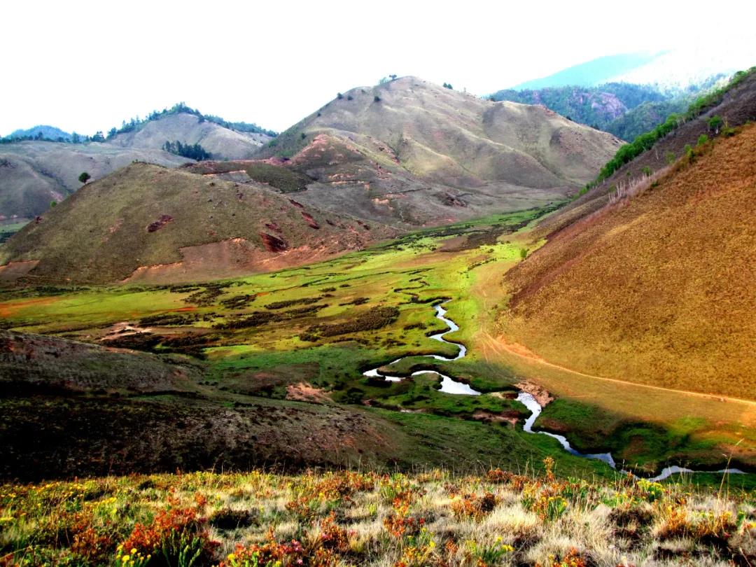 情人壩四面環(huán)山,中央隆起,綠茵蔥蔥的草甸中央流尚著一條溪流,四周山體蜿蜒起伏,層層疊疊的白樺林和楓葉樹,呈現(xiàn)出五采繽紛的色彩,情人壩旁的稗子溝點(diǎn)綴出優(yōu)美的田園風(fēng)光,讓人流連忘返。每年五月初五,人們身著盛裝相聚于此,載歌載舞。