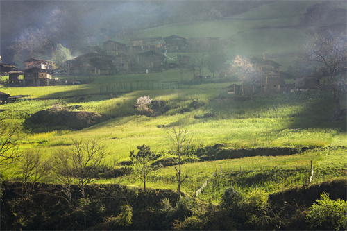 房子周邊古老的核桃樹正在發(fā)著新芽