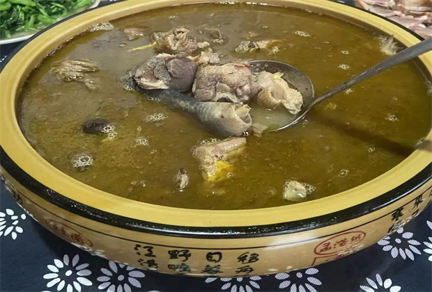 漆油雞,是怒族的一道特色美食,把塊狀漆油煉化,然后放入土雞進(jìn)行翻炒,隨后放入沸水,用小火進(jìn)行慢燉,半小時(shí)即可食用。期間,可根據(jù)自己口味放入食用鹽、生抽、小紅椒等調(diào)味品。雞肉和漆油的香味混在一起,清香撲鼻,雞肉在沸水里面翻滾,湯色已成黃色。這時(shí)舀起雞湯,先用濃濃的雞湯開(kāi)胃,再吃上一口雞肉,這就是一場(chǎng)舌尖的享受。如果用現(xiàn)榨的漆油做漆油雞,味道更加香醇。