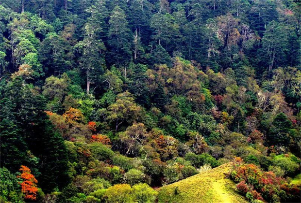 富和山景區(qū)位于怒江蘭坪啦井鎮(zhèn),現(xiàn)在還是一塊天然的處女地,純粹自然,未被塵世所干擾。走進萬籟俱寂的原始森林,抬眼便讓人目眩神暈,筆直生長的古木遮天蔽日、苔蘚斑駁。腳下灌木叢生,綠意盎然,四周寂靜無聲,只余風聲、水聲、鳥鳴聲,宛如一個藏在世界之外的“小世界”。