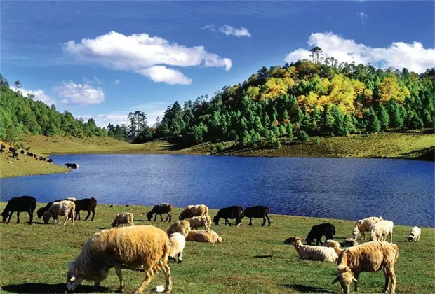 怒江的風(fēng),把富和山上的羊群吹著走,它們的白色身影隨著小溪蜿蜒,構(gòu)成一幅幅生動的油畫。