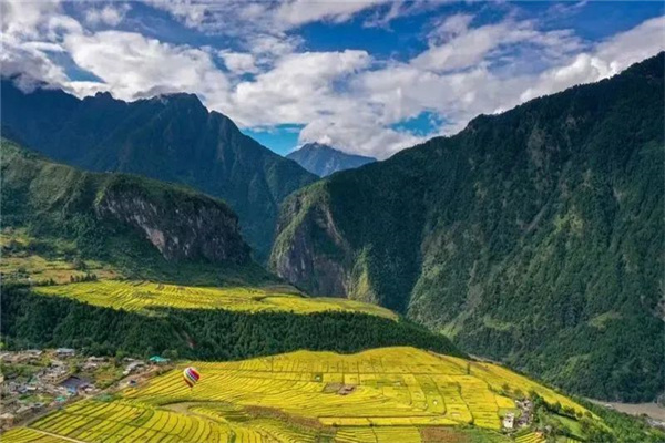 10月,丙中洛的稻谷追趕著時令,終于從一大片連接天地綠色的臥毯中,顯露出張揚的個性。稻田里,稻子一穗穗彎成鐮,伴隨著豐收的喜悅,每一穗都鼓足勁地飽滿,每一坰都變幻著彩妝……