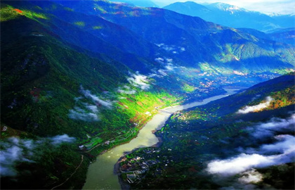 空中俯瞰怒江大峽谷,如夢如幻。這是世界上最神秘的的峽谷之一。這里有壯觀的大峽谷,激越的大江,潔白的雪山,