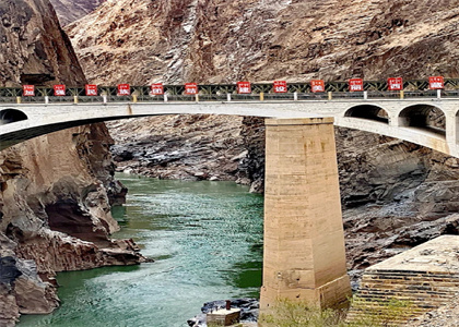 怒江大橋是川藏線的咽喉要道。 和平解放前,西藏全域120多萬平方公里的大地上,沒有一條公路。擔(dān)負(fù)解放西藏重任的十八軍,同時(shí)擔(dān)負(fù)起了修筑進(jìn)藏公路的重任。