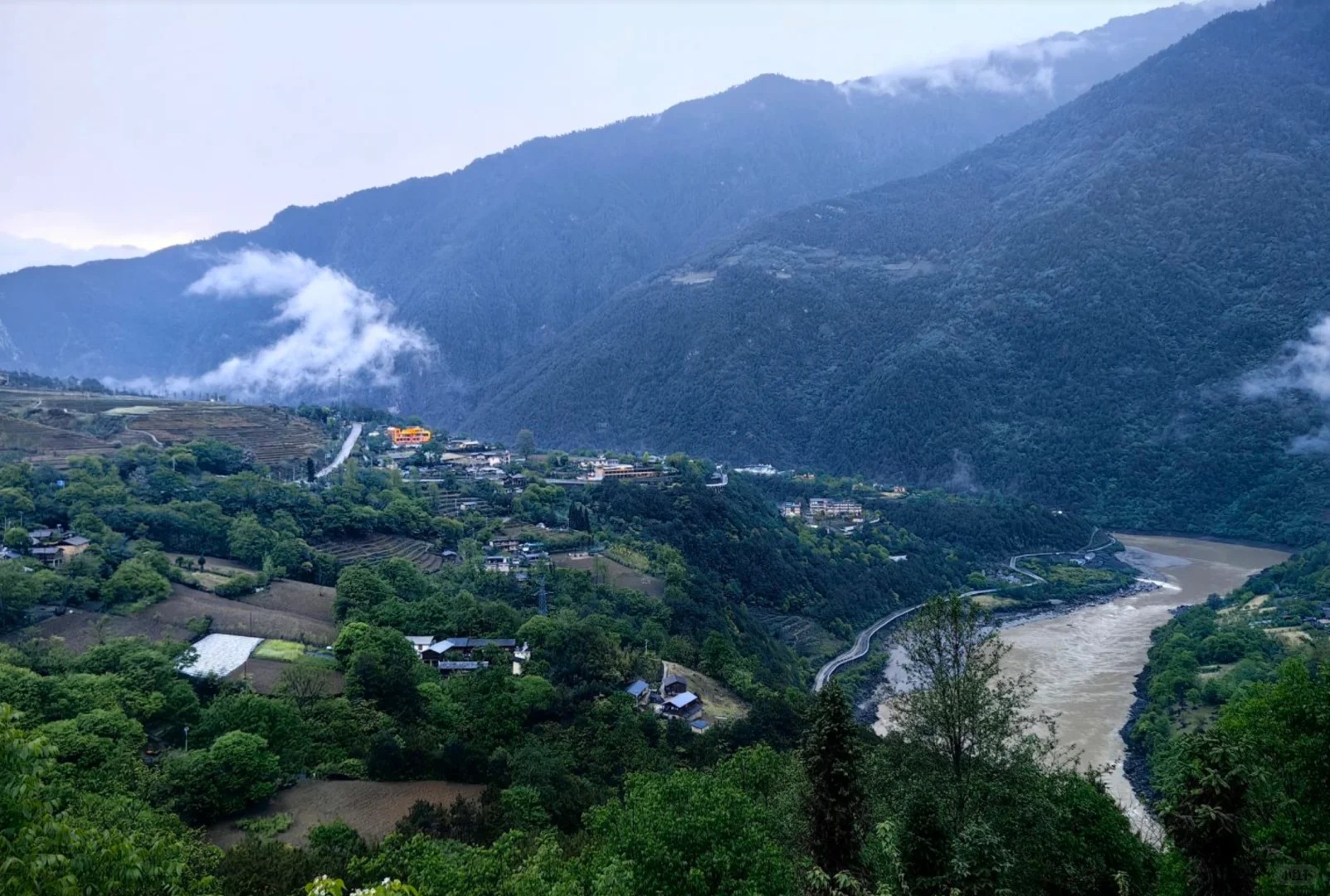 從丙中洛沿著美麗公路一路向北往察隅察瓦龍方向開,出了石門關(guān)幾公里就到了霧里村。 這是一個寧靜美麗的小村莊,位于怒江對岸、碧羅雪山山脈的腳下,全村只有60多戶人家,藏族、怒族、傈僳族混居,純樸熱情好客。