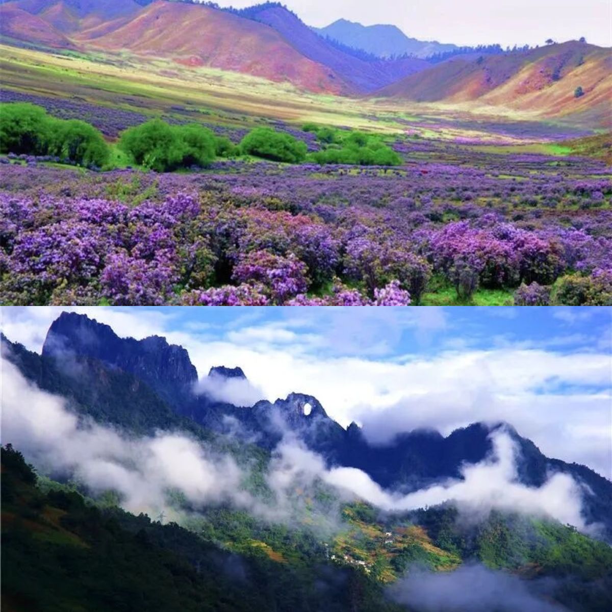 琢成赤壁丹崖的壯麗奇觀——石峰如柱如塔,姑娘山巍峨聳立。夏季來臨之時(shí),大羊場(chǎng)高山草甸上杜鵑花